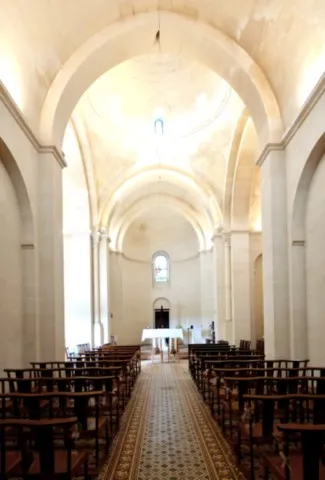 Néo-roman / néo-provençal, plan centré avec coupole à la croisée du transept et un charmant clocher à pans coupés.